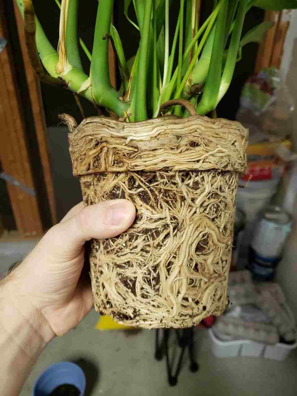But while they like to be slightly root bound too much is also going to hurt them. If the roots are circling the pot coming out of the drainage holes then your Monstera will probably struggle to take up enough water and nutrients.