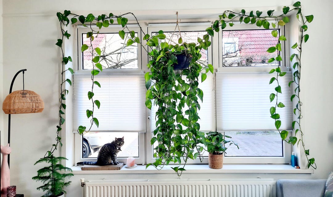 If you have any outdoor space then try guiding your pothos up patio posts or pergolas. It looks great and also gives you some privacy too.