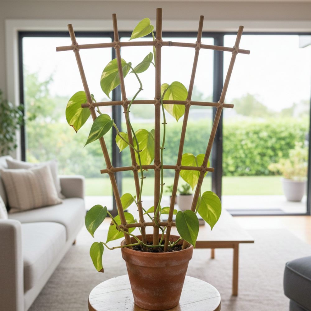 These are tough but also lightweight. Because of their size you can customize them quite easily. Bamboo trellis are great for helping to guide the vines of pothos in a certain direction.